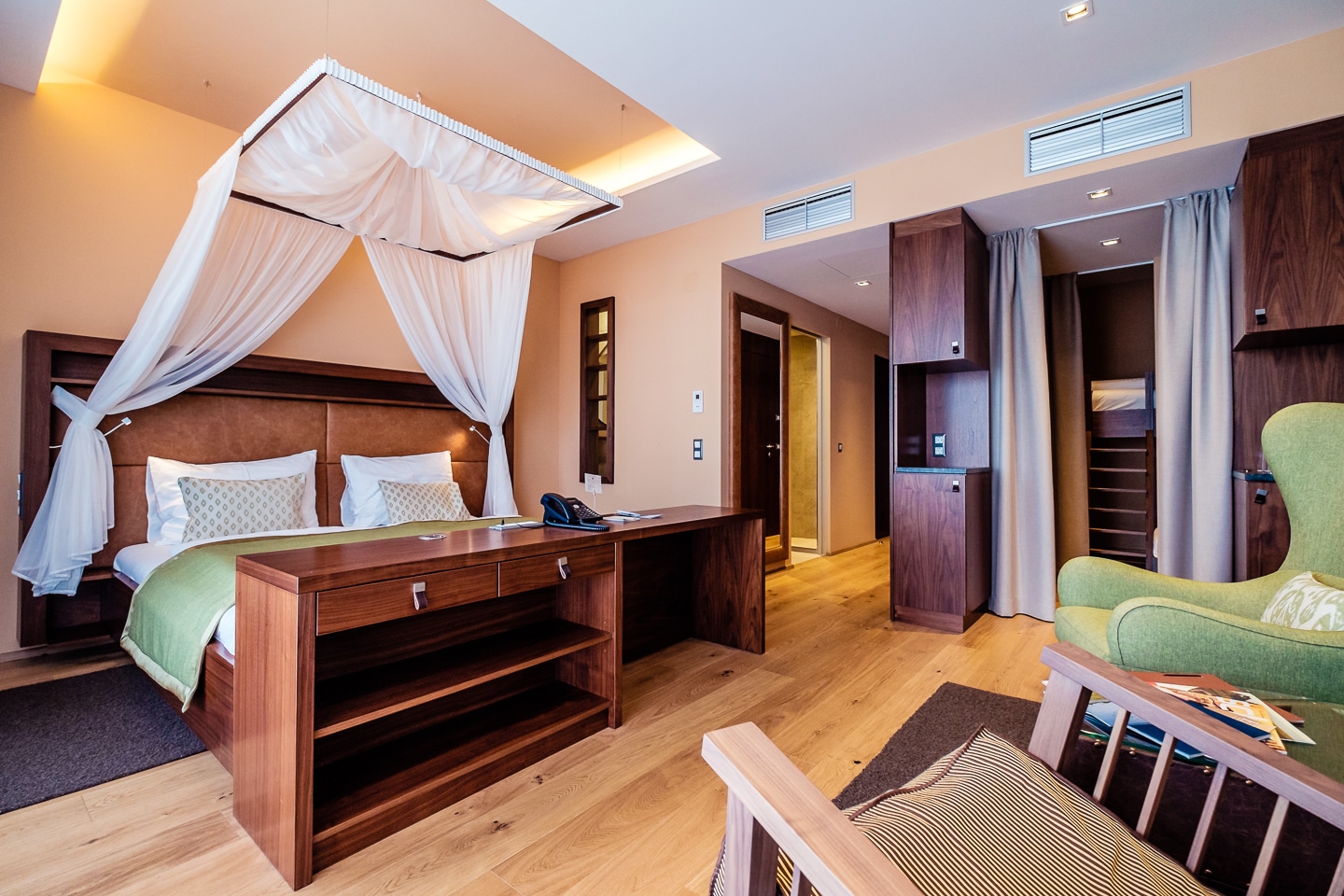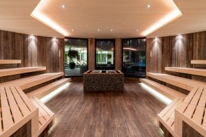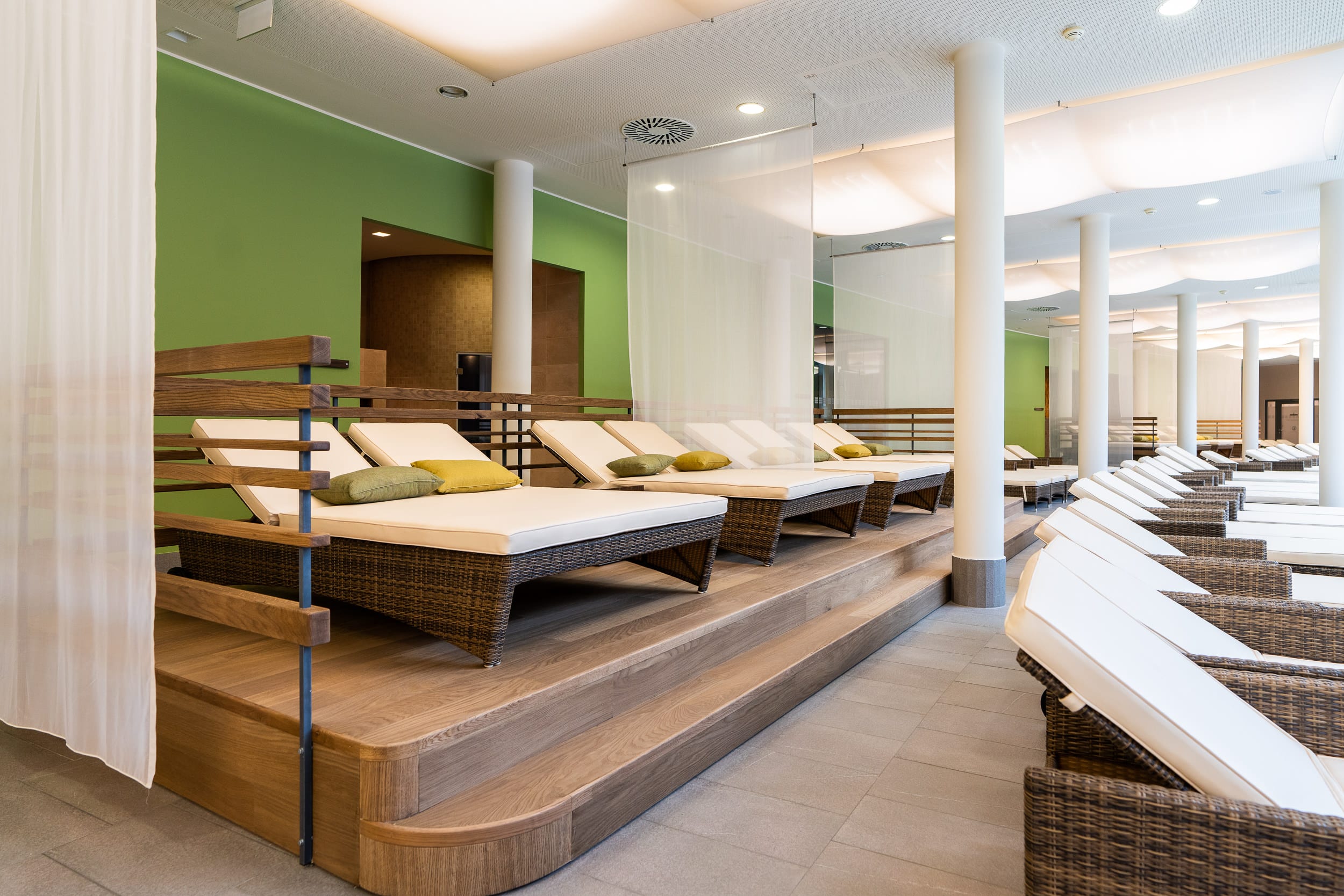 * 4.000 m² SPA mit Indoor & Outdoor Pool, Saunalandschaft mit Textilsauna, Finnische Sauna, Kräutersauna und Dampfbad, Finnische Sauna im Außenbereich, Ruheräumen und Ruhezonen, Liegewiese im Außenbereich